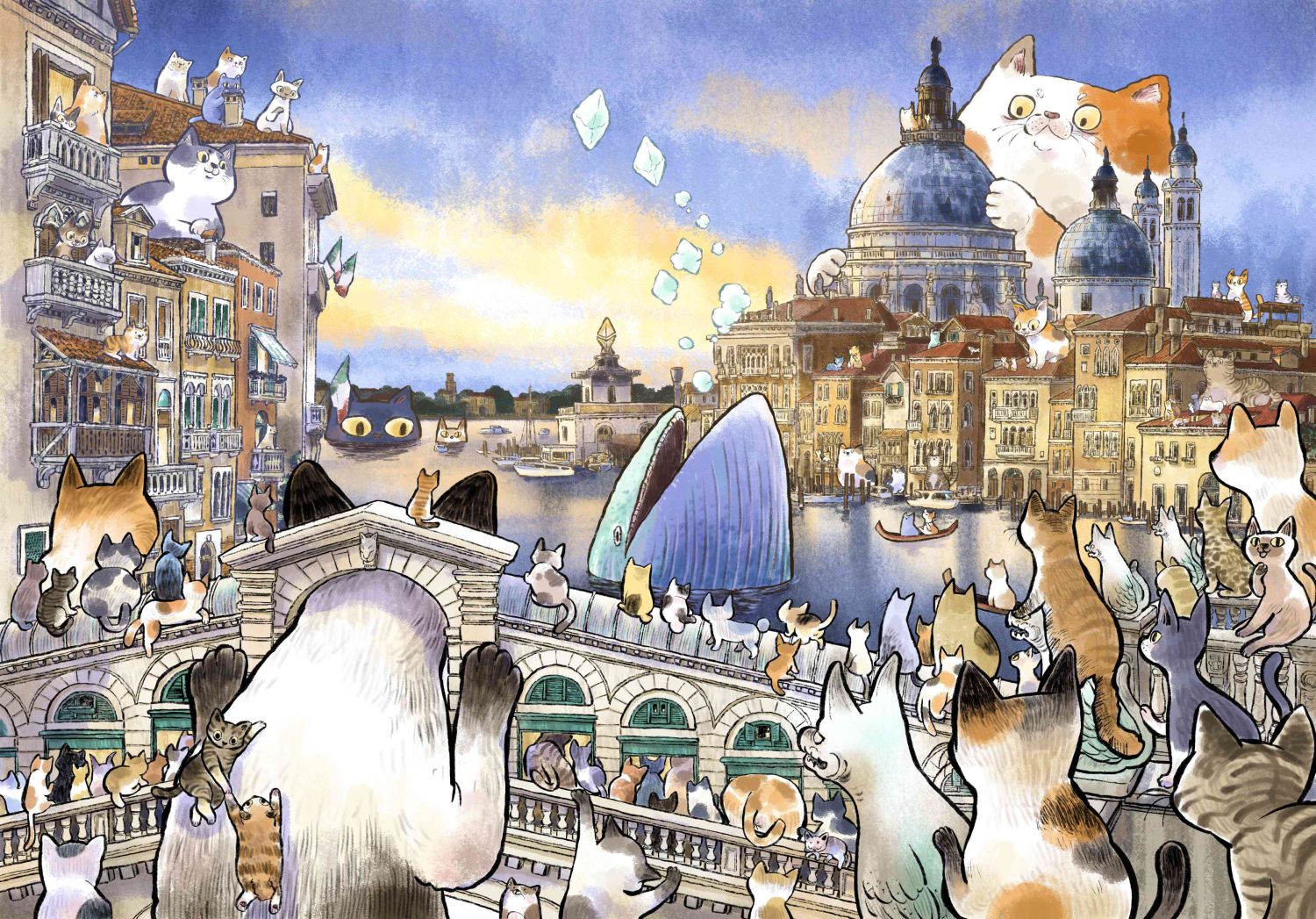 A cat gathering all over VeniceIt's something that happens every year. In the days before the Venice Carnival begins where blue whales rise above Lake Venetia to release air bubbles into the sky. Many people believe that cats are attracted to whales, and that bubbles have a special effect on cats. Or perhaps they just enjoy watching things move in the air.
