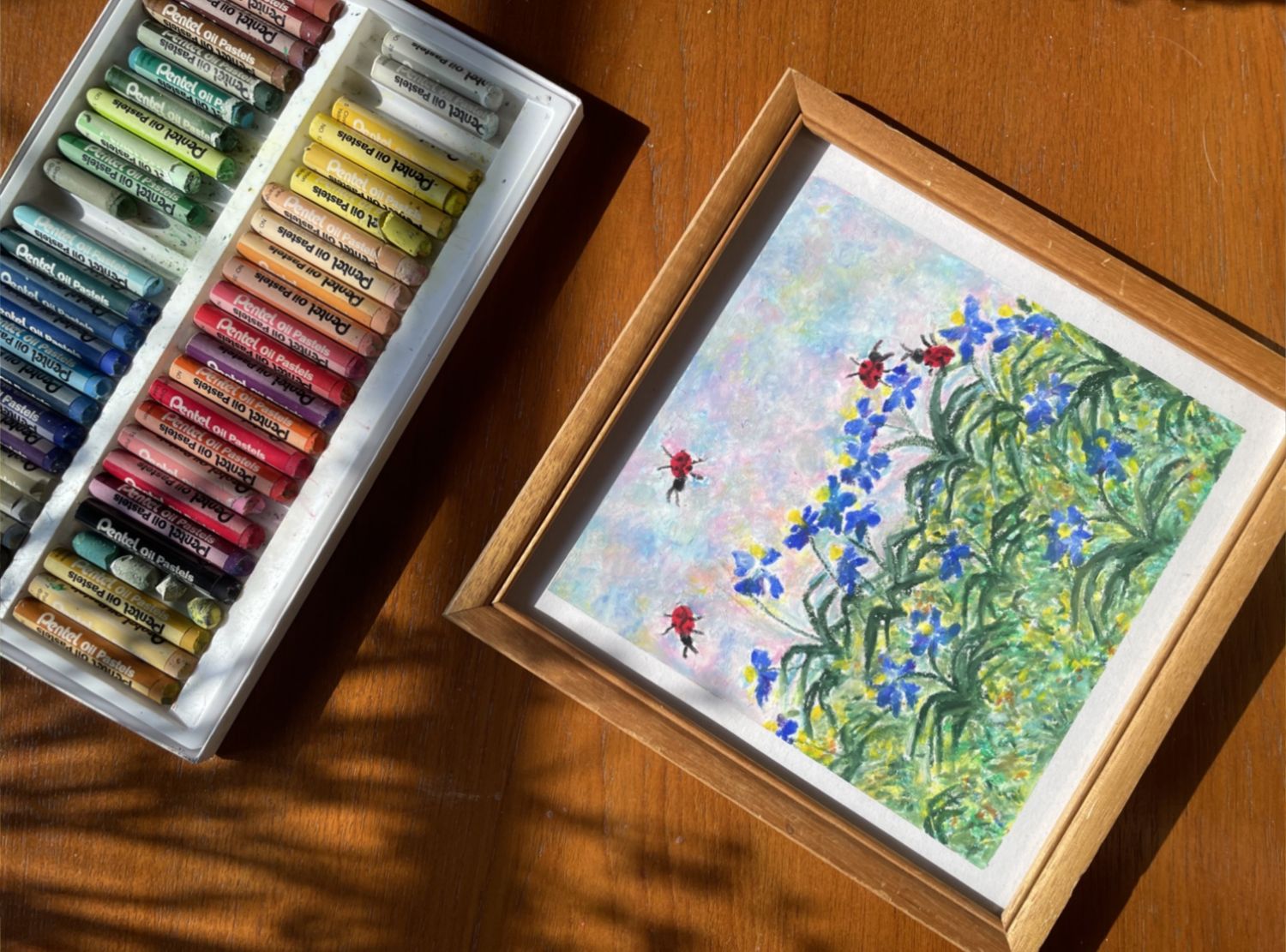 Oil pastel drawing on paper.Have you ever gazed at the moonlight on the ocean's surface and lost in the beauty of those shimmering reflections?