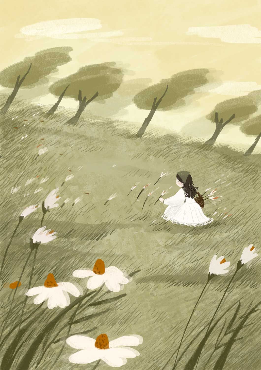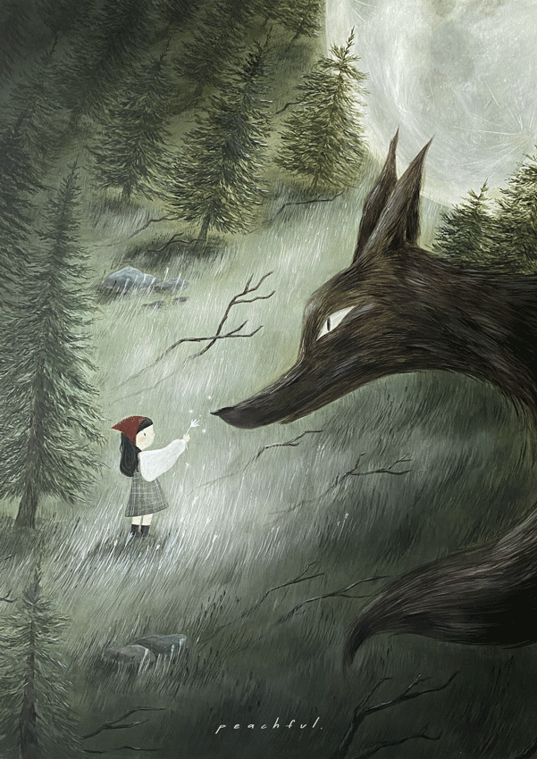 | "Peachful" is a Thai artist and illustrator who loves to portray the story of a grown-up reflecting on their life through revisiting their inner child. I hope my artworks will be your friend every day and soothe you on your darkest days. This art collection is inspired by foreign fairy tales and fables back in childhood days. Embrace your imperfection, it is a perfect gift. |