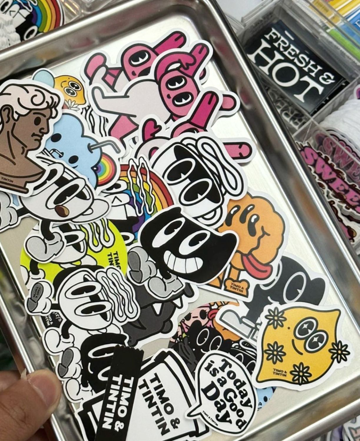 | Timo and Tintin is the playful identity of a Bangkok-based illustrator whose world blends cheeky charm with cultural commentary. Through bold characters, graphic storytelling, and nostalgic color palettes, the work speaks in a visual language that’s both contemporary and timeless. Timo and Tintin aren’t just characters—they’re a lens on the absurd, the sweet, and the overstimulated life we live today. With influences ranging from vintage cartoons to street culture and consumer aesthetics, each piece becomes a stage where humor, chaos, and quiet moments collide. Whether it’s a coffee cup, a gallery wall, or a city mural, the illustrations invite people to pause, laugh, and maybe look twice. |