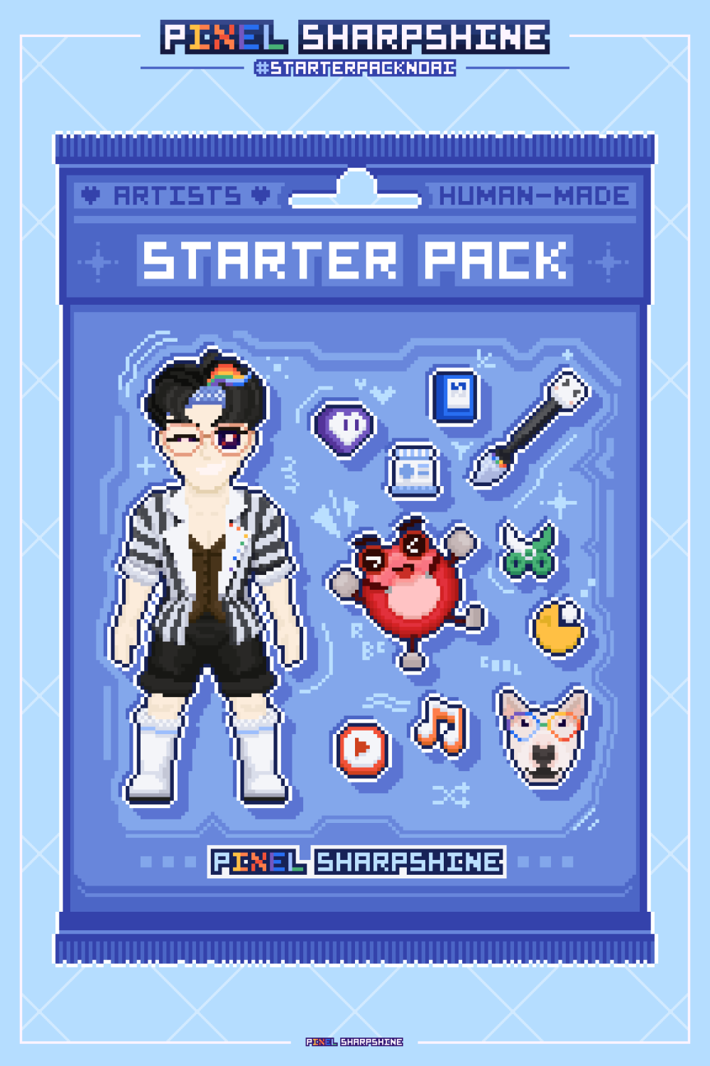 The challenge from social media is to create my own starter pack by myself.Mine includes my 7 rainbow-colored icons, my pixel art brush, my bestie 'Normo' (a red blood cell), my look-alike animal 'bull terrier', and of course, myself! 😁